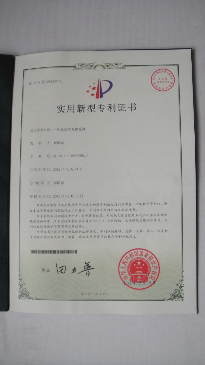 冷轧机有国家专利吗?有获得国家专利的冷轧机吗?巩义市金迪冶金设备有限公司作为一家专业从事冷轧机、冷轧设备研制生产销售的厂家,我公司生产的高延性双辊轧机专利号:ZL.2012 2 0055389.6。