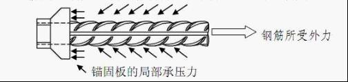 钢筋的锚固是混凝土结构工程中的一项基本技术,钢筋机械锚固技术为混凝土结构中的钢筋锚固提供了一种全新的机械锚固方法,将螺帽与垫板合二为一的锚固板通过直螺纹连接方式与钢筋端部相连形成钢筋机械锚固装置。其作用机理为:钢筋的锚固力由钢筋与混凝土之间的粘结力和锚固板的局部承压力共同承提或全部由锚固板承担。