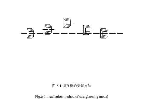 钢筋调直机中的调直筒及调直块的要求见零件图,调直筒可用一般结构钢或碳钢制造,调直块须用厂具钢制造,并进行热处理,块的内孔要具有一定的光洁度。GT4-8型调直机的调直筒 ,有两套调直模,每套有五个,其中一套内径为10mm,可以调直6-8直径的钢筋,另一套内径为6mm,可调直5mm直径以下的钢筋。调直模用工具钢制成,并经热处理。安装时,调直模的喇叭口应全部向调直筒进口方向。调直模在调直筒中的安装位置如图所示: