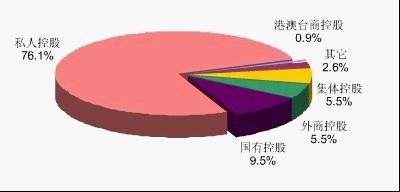 根据国家统计局的统计,2009年1-11月,我国冶金设备制造业规模以上企业个数共计548家,其中,私人控股企业数量较多,达到417家,占该行业企来数的76.1%;此外,国有控股企业有52家,占9.5%;集体控股企业和外商控股企业均有30家,占5.5%;满港澳台商控股企业个数较少,仅有5个,占0.9%。