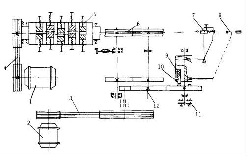 8-操纵机构;9-凸轮系统;10-离合器;11-制动装置;12-变速箱