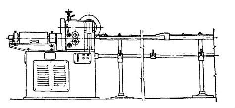 6-承料架;7-定尺装置;8-电动机;9-制动装置;10-变速箱;