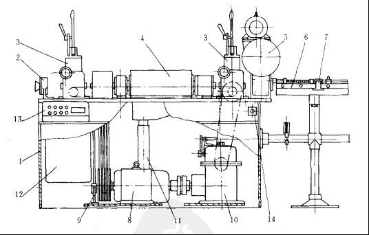 1-机架;2-导向装置;3-牵引装置;4-调直装置;5-切断装置;
