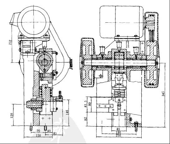 11-锥形齿轮;12、13、14-减速齿轮;15-调直筒